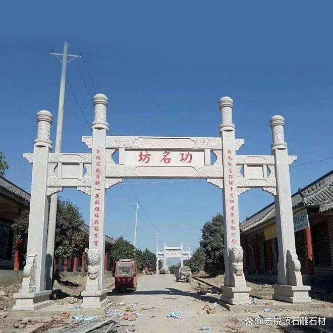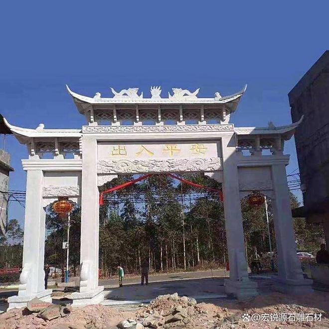 石牌坊的制作过程较为复杂,涉及多个环节。选取石料是关键的一步。常用的花岗岩质地坚硬,耐风雨侵蚀,适合长期户外存放。青石则质地细腻,便于雕刻细节。选料时需注意石料的完整性,避免有裂缝或杂质,以保证成品的稳固与美观。