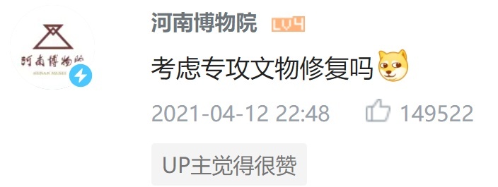 国家文物局官方微博 @中国文博 也发出邀请:“小伙子,欢迎一起探索文物世界。”