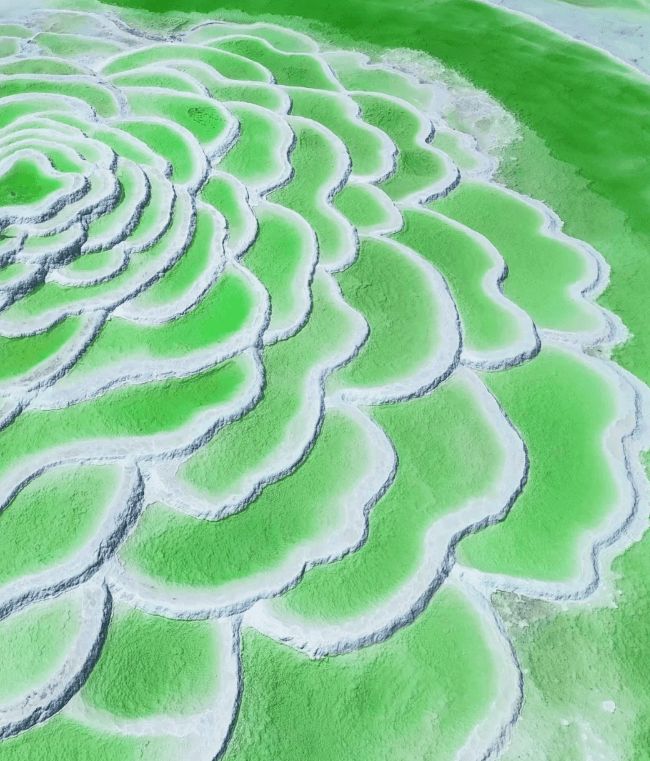 茶卡盐湖的清晨结着层薄霜,踩在盐滩上咯吱作响。小雪蹲下来抠起块盐晶:“看这六棱形结晶,像不像天然的钻石?” 穿红色长裙的姑娘们在镜面倒影里旋转,她举着相机跑前跑后:“退半步,让雪山正好在头顶!” 穿越柴达木时,戈壁滩上的梭梭树突然多了起来,“这些是治沙人种的,” 她指着远处的光伏板,“现在沙漠也能发电了。” 翡翠湖的黄昏美得让人窒息,硫酸镁湖是薄荷绿,氯化纳湖是蒂芙尼蓝,我们踩着盐堆拍照,鞋上结的白霜像撒了层糖。