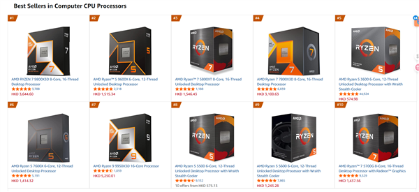 在亚马逊英国CPU销量榜上,采用Zen 3架构的锐龙7 5800X竟然击败了所有新款处理器,登上了榜首。
